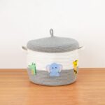 Safari Animals- Grey Rope Basket With Lid