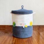 Enhance your child’s nursery and playroom organization with our high-quality cotton rope storage baskets. now with a convenient lid. Our medium. large. and set of two baskets can be purchased separately too. Each one is expertly handcrafted with premium cotton rope and decorated with felt hot air balloon cutouts. combining fashion and utility.