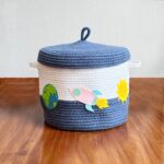 Sea Creatures – Navy Blue Rope Basket With Lid